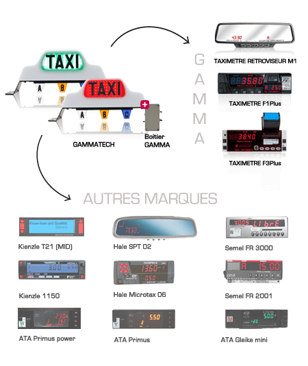 Le lumineux Gammatech est compatible avec les taximètres des marques suivantes :